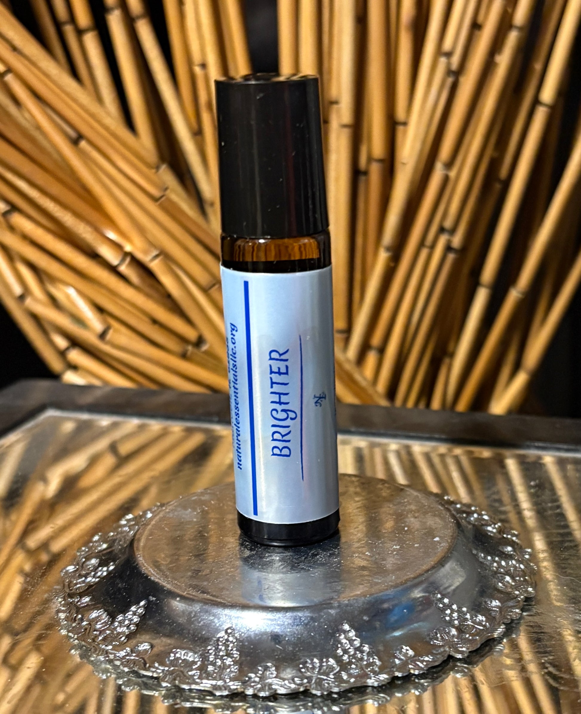Brighter is an aromatic blend crafted with Rose, Geranium, Lavender, Patchouli, and Lemon. layering soft florals, gentle earthiness, and a touch of citrus.