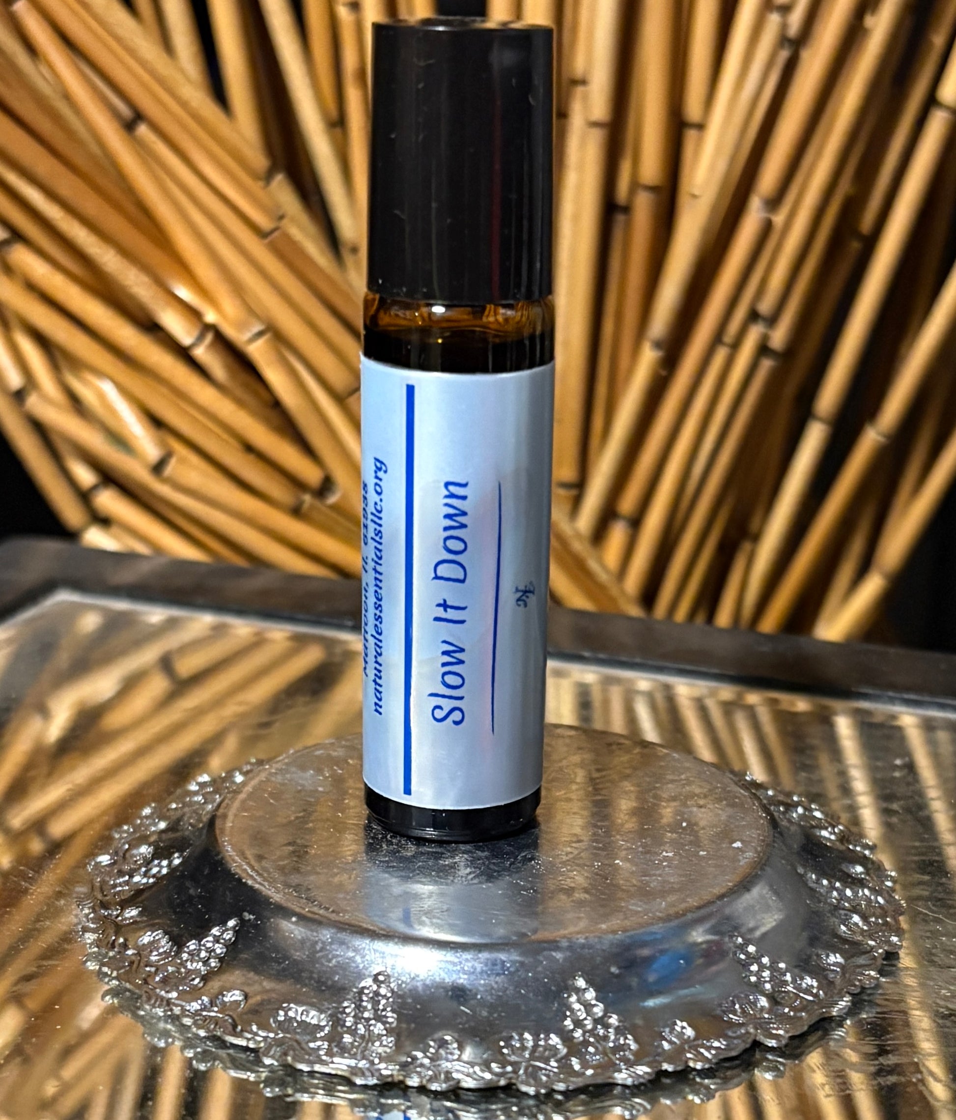 Slow It Down is a grounding aromatic blend featuring Cypress, Cedarwood, Frankincense, and Copaiba essential oils, traditionally used for their warm, resinous, and soothing aromas.